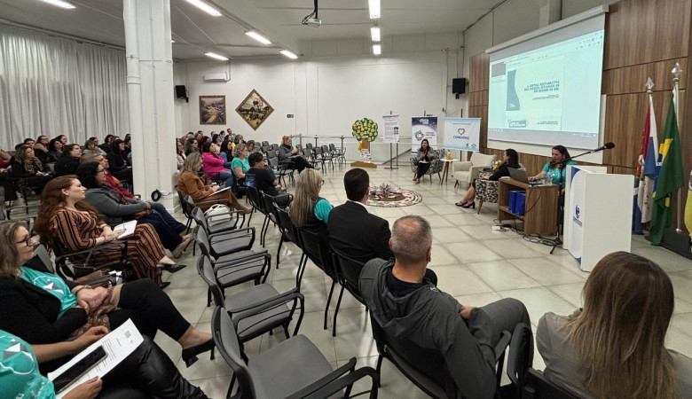 O seminário aconteceu no Centro de Eventos da Unijuí, iniciando com a Mostra de Práticas Restaurativas e, em seguida, com o painel “A Justiça Restaurativa no processo de trabalho em diferentes campos de atuação”, que contou com a participação de Petina Riccardi Lima, analista judiciária, facilitadora, instrutora e professora de Círculos de Construção da Paz do Tribunal de Justiça de Porto Alegre, e de Elis Jacqueline Dockorn, professora, facilitadora e instrutora de Círculos de Construção de Paz da Seduc de Porto Alegre.