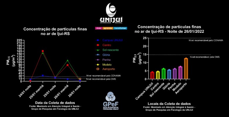 O GPeF da Unijuí passou a divulgar o monitoramento da concentração de partículas inaláveis em diferentes locais da cidade