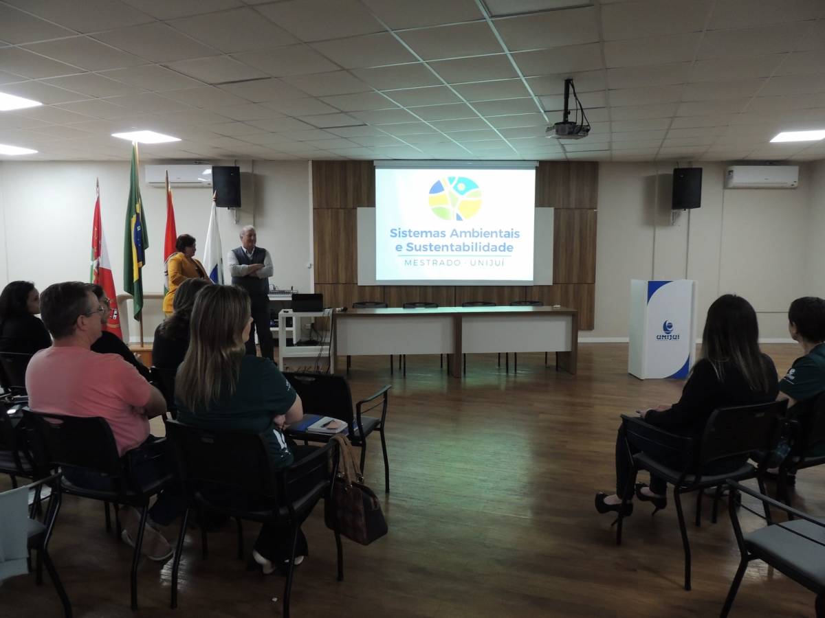 O Programa de Pós-Graduação Stricto Sensu em Sistemas Ambientais e Sustentabilidade, vinculado ao Departamento de Estudos Agrários, UNIJUÍ, promoveu um Seminário de apresentação dos projetos de pesquisa dos alunos da primeira turma do programa na tarde desta quarta-feira, dia 23/10/19, como parte integrante da programação do Salão do Conhecimento 2019. O evento foi coordenado pelas disciplinas de Seminários Interdisciplinares e Metodologia Científica e Projetos, ministradas pelo professor Roberto Carbonera e professoras Eniva Maladi Fernandes Stumm e Maria Andréia Inkelmann.