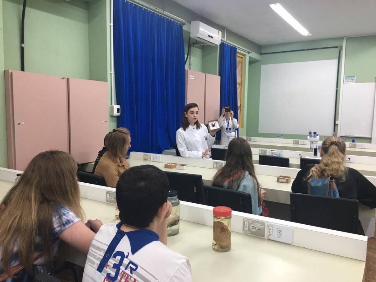 Os participantes interagiram a partir de práticas sobre citologia vegetal e animal com observação no microscópio, vírus, fungos e bactérias, reino dos animais com representantes de vertebrados e invertebrados, gerenciamento de resíduos sólidos, integrando a biodiversidade e as interações entre as diferentes áreas do conhecimento. Essa proposta teve como objetivo aproximar a comunidade dos projetos desenvolvidos no meio acadêmico, a partir de uma parceria com a Prefeitura Municipal de Condor/RS.