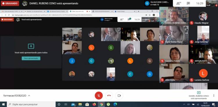 O Programa de Mestrado em Sistemas Ambientais e Sustentabilidade promoveu uma formação aos docentes nesta segunda-feira, 24 de agosto. O convidado foi o Prof. Dr. Amir Limana, que está em pós-doutoramento em Roma, na Universidade de Sapienza, Itália. Ele já atuou como docente da Unijuí, tendo, neste encontro, pautado a fala na obra de Giuliano Da Empoli, intitulada “Engenheiros do Caos”, que é jurista de formação, escritor e jornalista. Está fortemente implicado com as redes sociais, como as fake News, teorias da conspiração e os algoritmos que estão sendo utilizados para disseminar ódio, medo e influenciar nas eleições em diversos países, como no Brasil. Participaram do debate, coordenado pelo professor Roberto Carbonera, professores dos programas de pós-graduação da instituição e convidados externos.