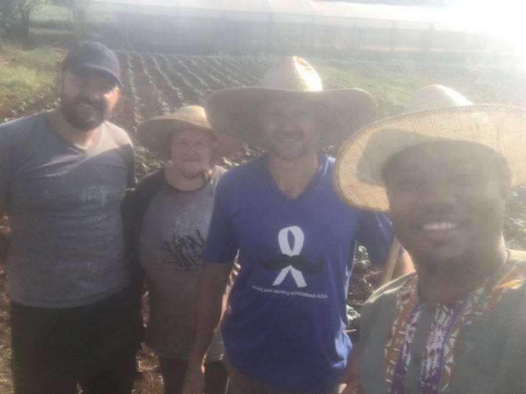 Depois de uma refeição farta com a família de Tiago, fomos à casa de seu irmão, Eturi Müller, produtor de hortaliças e aves ornamentais como pombos, pavões e patos. Ele nos mostrou os diferentes sistemas de produção aplicados para maximizar seu rendimento e algumas práticas agrícolas como irrigação por aspersão que pode bombear até 5.000 ml/dia. Mas ele também nos disse, como todos os fazendeiros, seus temores em relação ao mercado, porque o sistema capitalista é feito de tal forma que os camponeses são os mais desfavorecidos em termos de perfil. Assim, eles trabalham mais, mas encontram-se com mais fluxo de caixa devido a um mercado muito exigente.