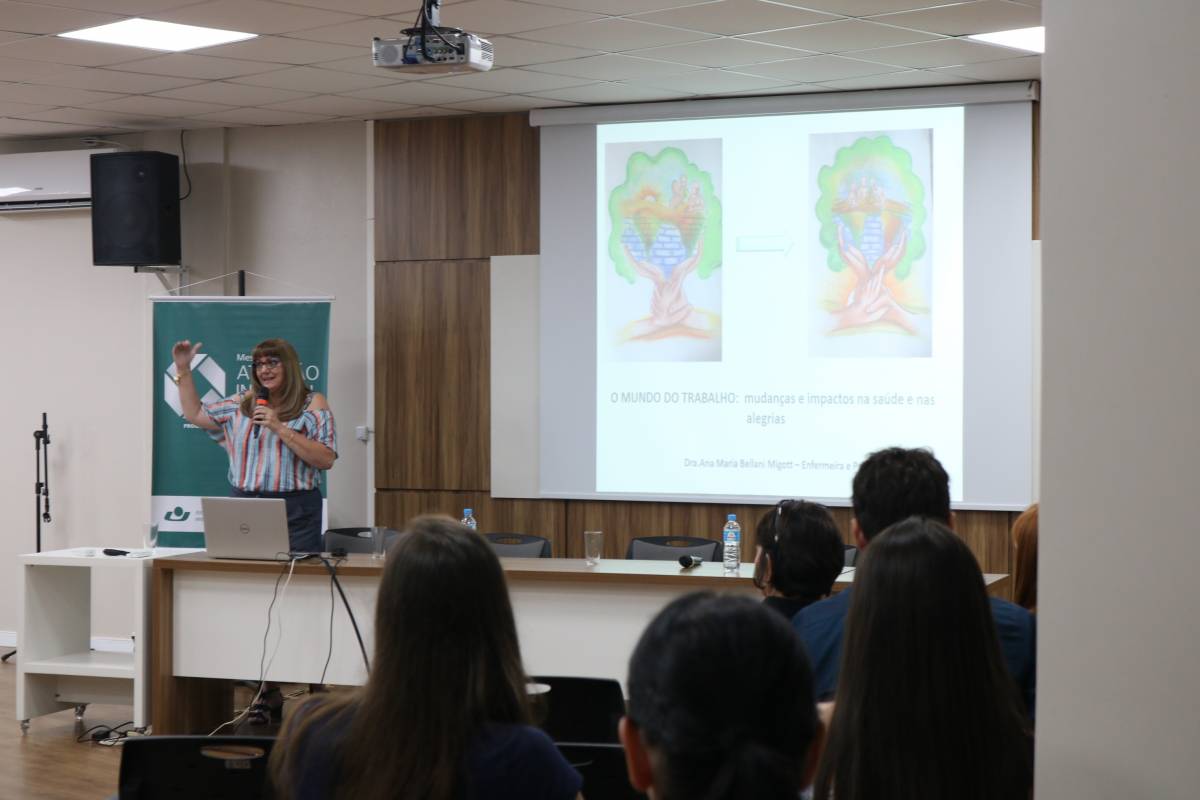 E, na programação da noite, foi realizada a “Mesa Redonda: Experiências acadêmicas e profissionais de egressos do curso de Mestrado em Atenção Integral à Saúde”, com as mestras Natacha Cossetin Mori, Pâmela Vione Morin e Franciéli Aline Conte. Logo após, ocorreu ainda a Palestra: “O mundo do trabalho está mudando? (Visão de futuro do mercado de trabalho)”, com a professora Dra. Ana Maria Bellani Migott, da Universidade de Passo Fundo.