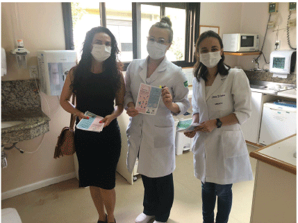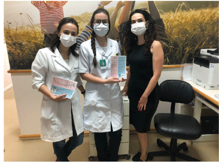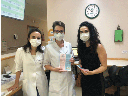 Estes materiais foram disponibilizados à instituição hospitalar, que fará a entrega aos cuidadores no momento da internação hospitalar. Além disso, os materiais foram entregues aos cuidadores que estavam acompanhando pacientes internados e à equipe multiprofissional do hospital.