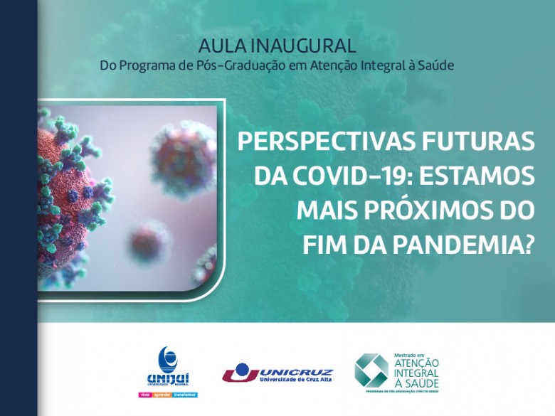 O Programa de Pós-Graduação Stricto Sensu em Atenção Integral à Saúde realiza na próxima quarta-feira, dia 9 de março, a aula inaugural com o tema “Perspectivas futuras da covid-19: estamos mais próximos do fim da pandemia?”. O evento terá início às 19h, com transmissão pelo Google Meet.