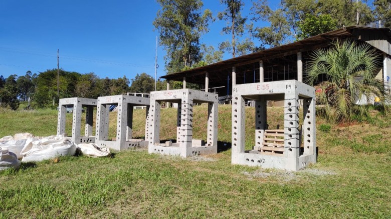 Ela destaca ainda que nesse primeiro trabalho, a construção dos blocos de concreto foi realizada em laboratório, que é um ambiente controlado, e em estruturas de concreto em escala reduzida. “O modelo encontrado a partir de Redes Neurais Artificiais apresentou boa acurácia, a pesquisa teve uma boa aceitação pela comunidade científica, então decidimos estender os resultados. Para isso, eu submeti um projeto ao Edital Fapergs 07/2021 – PqG, intitulado “Modelagem de Ensaios Não Destrutivos e Semi Destrutivos para a Estimativa da Resistência à Compressão de Estruturas de Concreto” que obteve aprovação para a construção dos pórticos que estão no campus. Os novos experimentos, que estão sendo realizados nestes pórticos, visam aumentar a nossa base de dados, assim como obter resultados a partir de uma estrutura de concreto que simula uma construção em ambiente real”, completa.