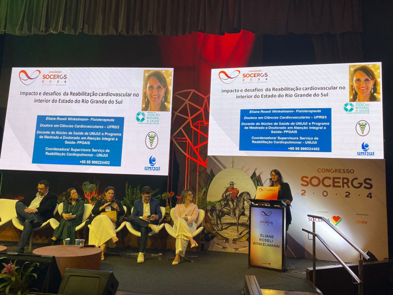 Entre os dias 10 e 12 de outubro, a fisioterapeuta e professora da Unijuí nos cursos da Saúde e no Programa de Pós-Graduação Stricto Sensu em Atenção Integral à Saúde, Eliane Roseli Winkelmann, esteve participando do Congresso da Sociedade de Cardiologia do Estado do Rio Grande do Sul - Socergs, realizado em Gramado.
