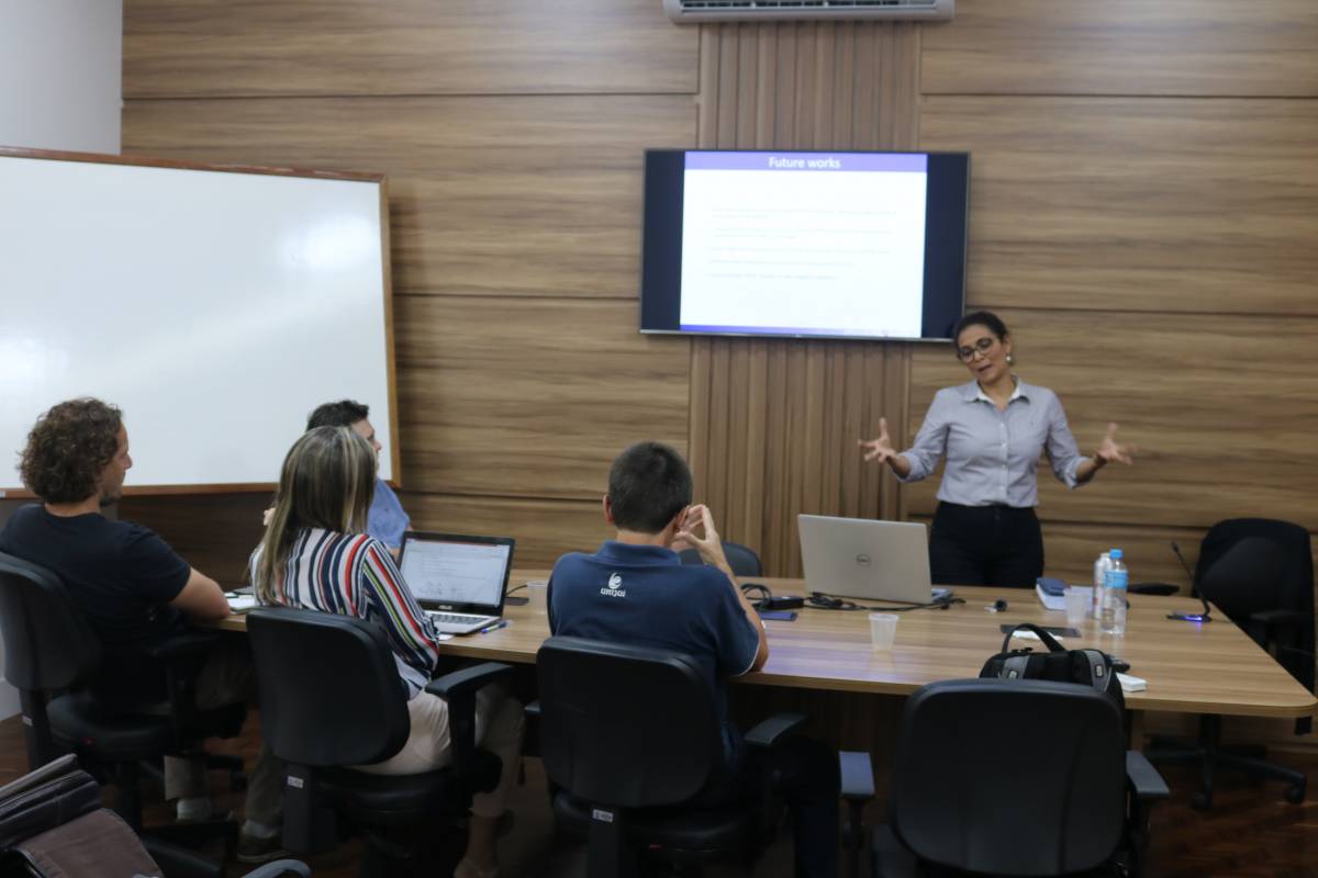A egressa participou de atividades com estudantes e professores do curso de Mestrado do PPGSAS e do curso de Agronomia, incluindo a coordenadora Angélica de Oliveira Henriques, além da representante do Centro Acadêmico da Agronomia, Laura Arnold.