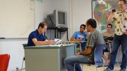 Prova de Comunicação Oral, sendo filmado meu parceiro ("partner") Sírio George Jamal, à direita.
