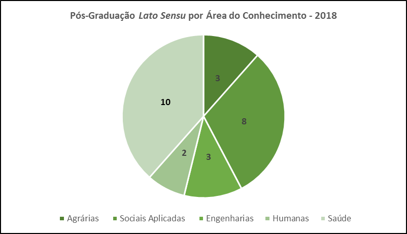 No ano de 2018, ao todo, foram realizadas 22 novas projeções orçamentárias de cursos de Pós-Graduação. Neste ano houve a efetivação de 10 cursos. Destes, 7 foram orçados em 2017 e 3 em 2018. Em resumo, houve 26 ofertas de cursos, 10 efetivações, 10 cancelamentos e 6 cursos prorrogados. Ainda, neste nível de Pós-Graduação, foi elaborada a projeção orçamentária para oferta do Programa de Aprimoramento Integrado em Medicina Veterinária, sendo este curso aprovado pelo CONSU e com início programado para março de 2019.