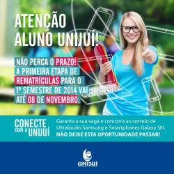 Fazendo a rematrícula, além de garantir a sua vaga, você concorre a Ultrabooks Samsung e Smartphones Galaxy SIII!