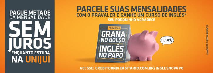 Com o PRAVALER você parcela suas mensalidade NA UNIJUÍ e ainda pode ganhar um curso de inglês!