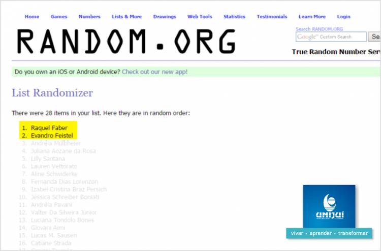 Sobre a retirada de ingressos, lembrem-se: Os ingressos poderão ser retirados até amanhã, às 17h na Coordenadoria de Marketing da UNIJUÍ (Prédio da Biblioteca Mario Osorio Marques - Câmpus Ijuí) ou na Casa da UNIJUÍ, na Expo, no Sábado (dia do Show). Os ingressos deverão ser retirados [B]somente[/B] pelos sorteados, com apresentação de documento de identidade com foto.