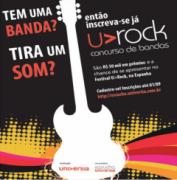 Recebemos o convite esta semana, e apoiamos os alunos que tem bandas a participar do concurso. O U>Rock possibilitará aos universitários compartilhar e divulgar suas composições em toda a Ibero-américa. Podem participar bandas ou cantores solo com estilo Pop-Rock, residentes no Brasil e maiores de 18 anos, matriculados regularmente em uma Instituição de Ensino Superior parceira do Universia Brasil. No caso de bandas, ao menos um integrante deve estar matriculado.