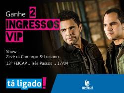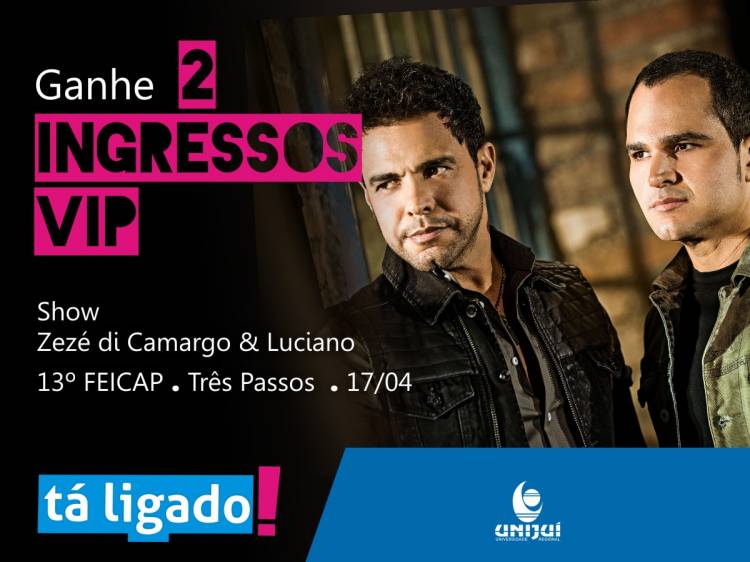 O Tá Ligado é fã de galera esperta, por isso o primeiro que acertar a resposta leva os 2 ingressos para a área VIP do Show do Zezé Di Camargo & Luciano na 13ª FEICAP – Três Passos nesta sexta-feira, dia 13/04.