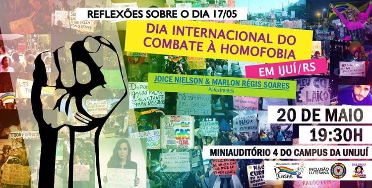 O Câmpus da UNIJUÍ será palco de um debate, nesta quarta-feira. No Miniauditório 4, às 19h30min, será realizado o evento "Reflexões sobre o dia 17/05: Dia Internacional do combate à Homofobia", em Ijuí!