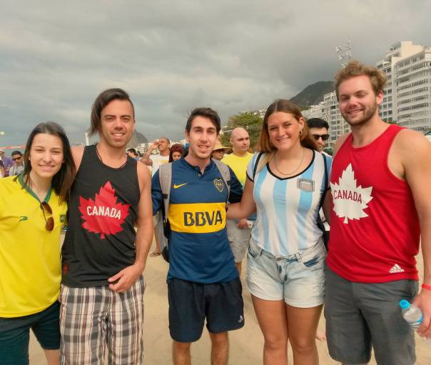 Algo que eu queria fazer nas Olimpíadas era conhecer pessoas novas e assim o fiz. Desta maneira, fica mais um aprendizado e dica aos colegas que assim como eu, não sabem a língua inglesa: aprenda o inglês. A minha dificuldade foi a de se comunicar com duas jovens da Grã-Bretanha na praia de Ipanema. Da mesma forma, dois jovens canadenses na fila do vôlei de praia, para tirar uma foto juntando a galera de países diferentes. Mas, o improviso deu certo. Um “welcome to Brazil”, já foi suficiente para dar boas vindas aos estrangeiros.