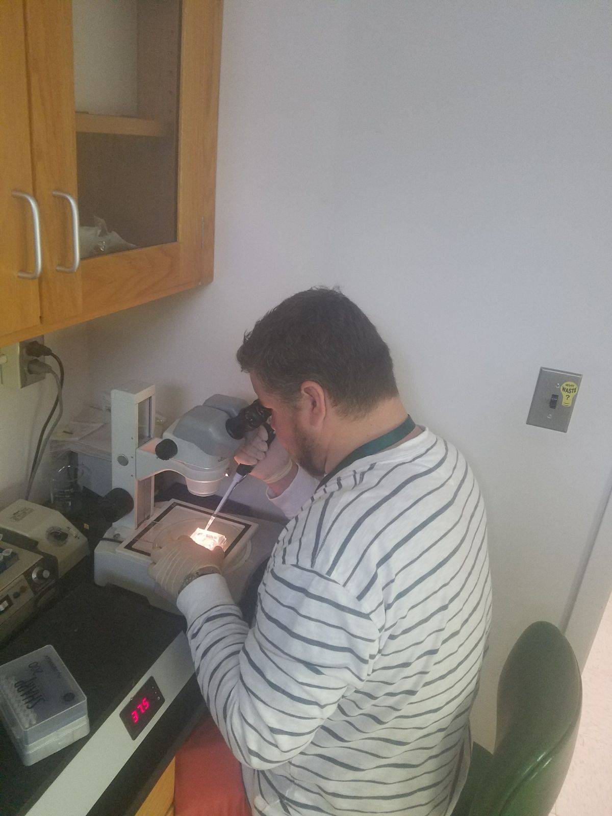 Por intermédio da professora, Jonas, que estava em busca de um estágio, entrou em contato com o Dr. Joao Paulo Martins, que fazia seu PHD com o Dr. J. Richard Pursley, nos Estados Unidos. “Eu vim para os EUA com a pretensão de fazer um estágio de cinco meses e retornar ao Brasil para minha formação. No entanto, ao final desses cinco meses, o Dr. Pursley me ofereceu um emprego como assistente de pesquisa em seu laboratório de reprodução animal, no qual trabalhei durante um ano e meio”, comenta.