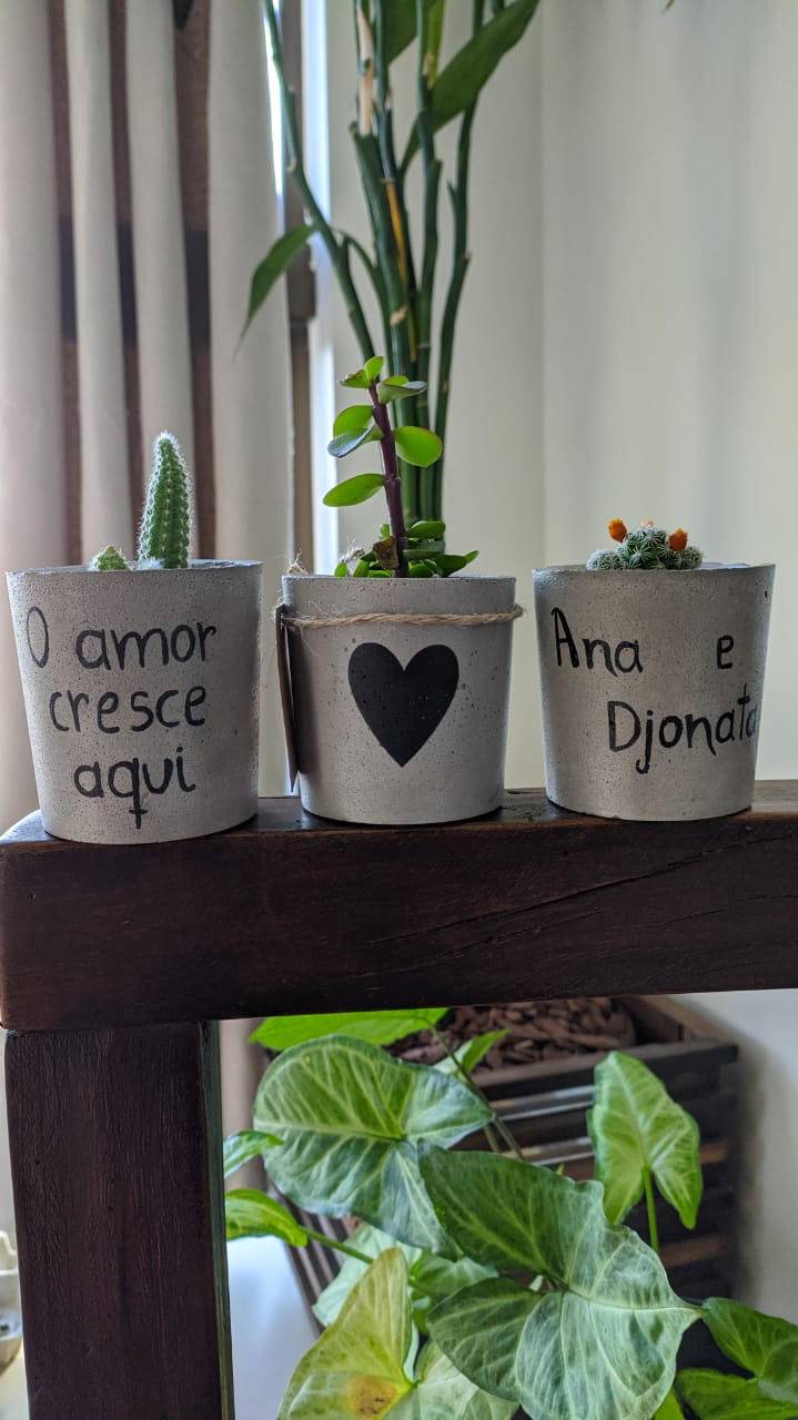 Foi então que decidiram iniciar a produção de vasinhos em concreto. Depois de assistirem a muitos vídeos, errar e descartar vários testes, conseguiram chegar ao padrão que queriam para comercializar. “Nasceu então a “Cinza Flor”, a produção é feita de modo 100% artesanal, a partir de pedidos personalizados e, junto com cada peça, vai todo nosso amor”, destaca Débora, que agora além de estudante é uma artesã de talento.