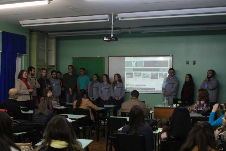 Os alunos de Jornalismo da Unijuí tiveram uma aula diferenciada na noite de terça-feira, 16 maio. A aula aberta do 5º semestre de Jornalismo Especializado, disciplina ministrada pela professora Lara Nasi, contou com participação da editora assistente e colunista de TV na Zero Hora, Vanessa Scalei. Na oportunidade, houve também o lançamento do site de notícias Redação K1, apresentado pelos alunos responsáveis pela criação de conteúdo do portal.