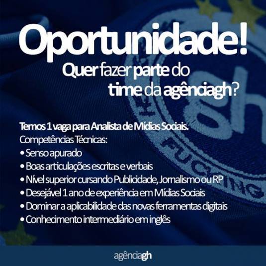Interessados podem enviar e-mail para: gustavo@agenciagh.com.br