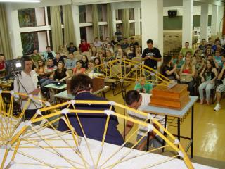 Quatro grupos, constituídos por estudantes de vários semestres, aceitaram o desafio de construir pontes de espaguete utilizando como materiais massa e uma cola especial, especificadas através de um regulamento.