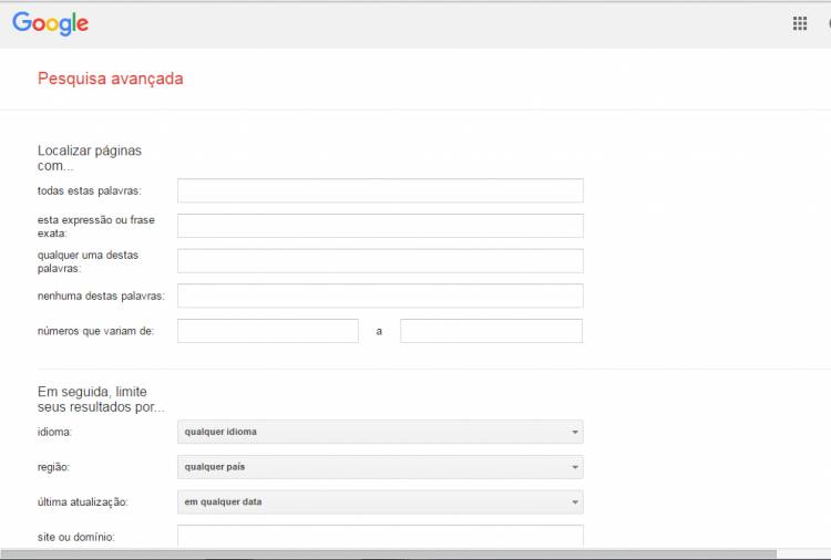 O site de busca mais popular dispõe de uma ferramenta pouco conhecida, porém, muito eficiente. Pelo Google Advenced Search você pode detalhar sua busca da maneira que você deseja. Inserir palavras que não queira, definir o formato e data que quer seus resultados, entre muitas outras opções.
