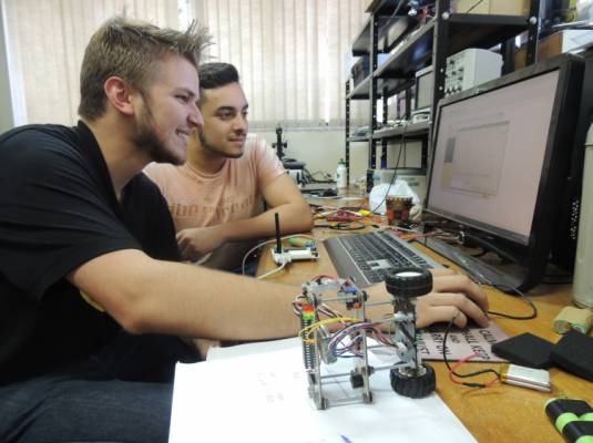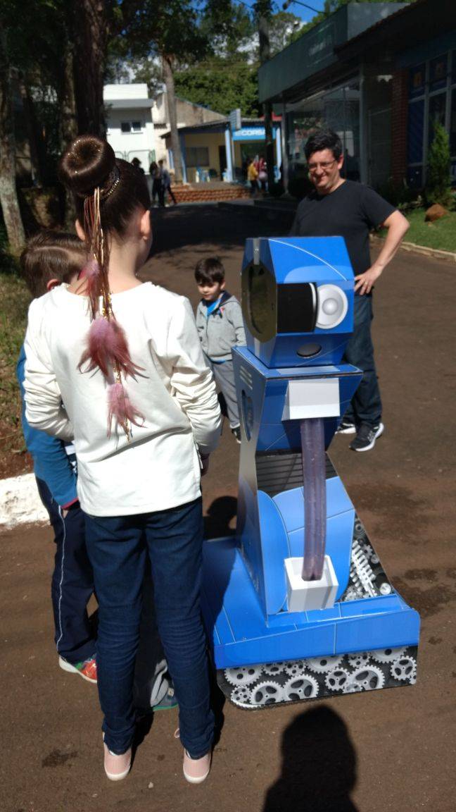 O Grupo de Automação Industrial e Controle – Gaic, do Departamento de Ciências Exatas e Engenharias da Unijuí (DCEEng), desenvolveu um robô com tecnologia capaz de reconhecer faces, conversar com pessoas e ser operacionalizado a uma distância de até 600 metros. A tecnologia está circulando pela Casa da Unijuí na ExpoIjuí/Fenadi 2017.