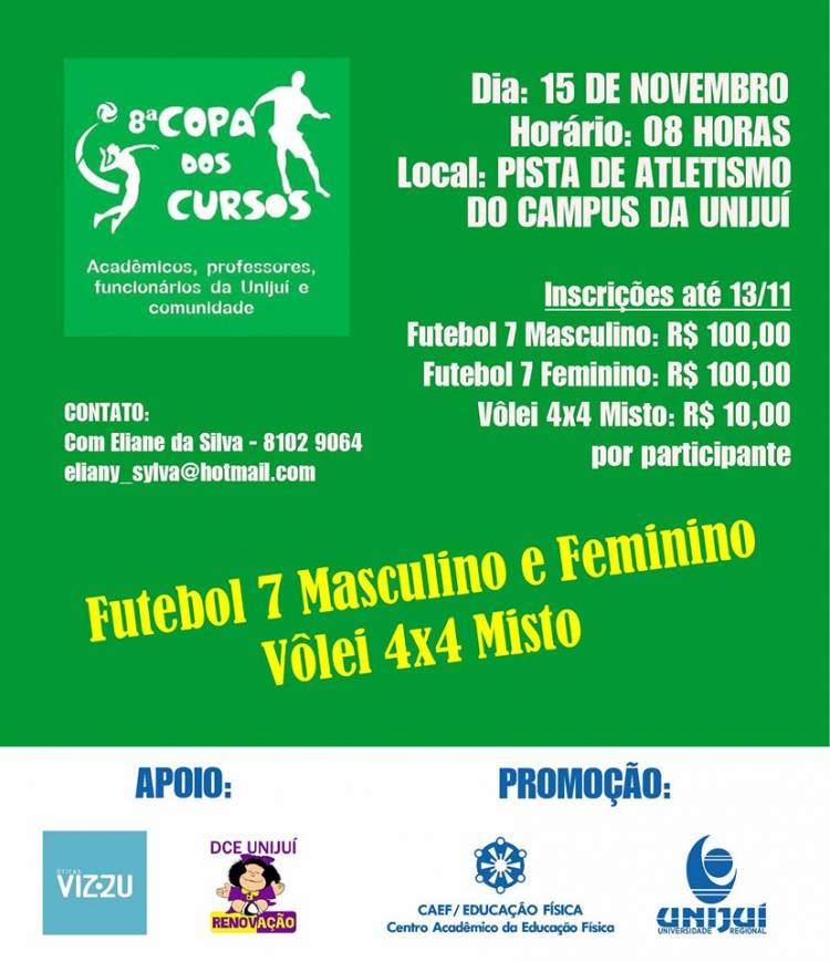 Você, acadêmico da Unijuí, está convidado a participar da 8ª Copa dos Curso, convide seus colegas e monte uma equipe. Saiba mais neste post!