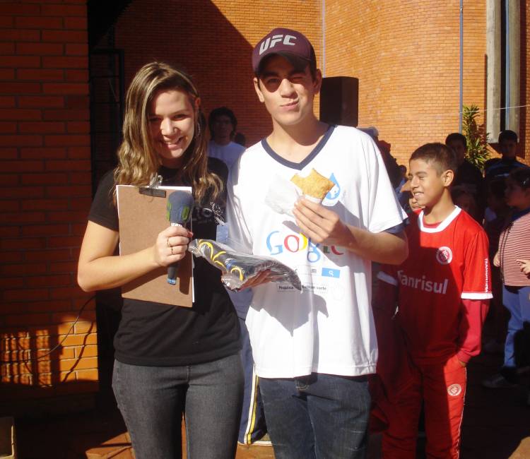 Seguindo com a programação, na parte da tarde foi à vez de quatro alunos da escola Catuípe vir até IJUÍ, e participar do quis de perguntas no estúdio da 106.9. Alunos do 2º ano do Ensino Médio conversaram com a equipe Sabrina Bertollo e Betina Prestes, contando suas expectativas e o que desejam cursar após o término do Ensino Médio. Também rolou na programação o pedido musical e os recadinhos da galera Finalizando o quis, a cada resposta correta, eles somaram muitos pontos para a escola Catuípe.