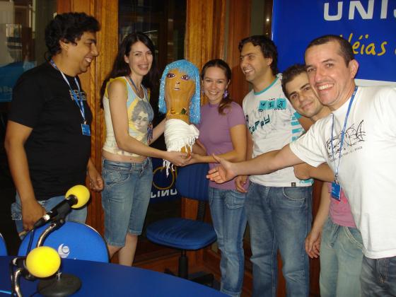 E assim foi a despedida de nossa alaranjada companheira Dorotéia. A abóbora mais fashion do horti-fruti deixou a UnijuíFM na sexta (30) à tardinha quando os vencedores da promoção (Vitor dos Santos, Felipe Almeida, Daiane Portela e Jordana Silva ) levaram para casa (ou para a panela...) o ingrediente principal da receita de Pudim de Abóbora.