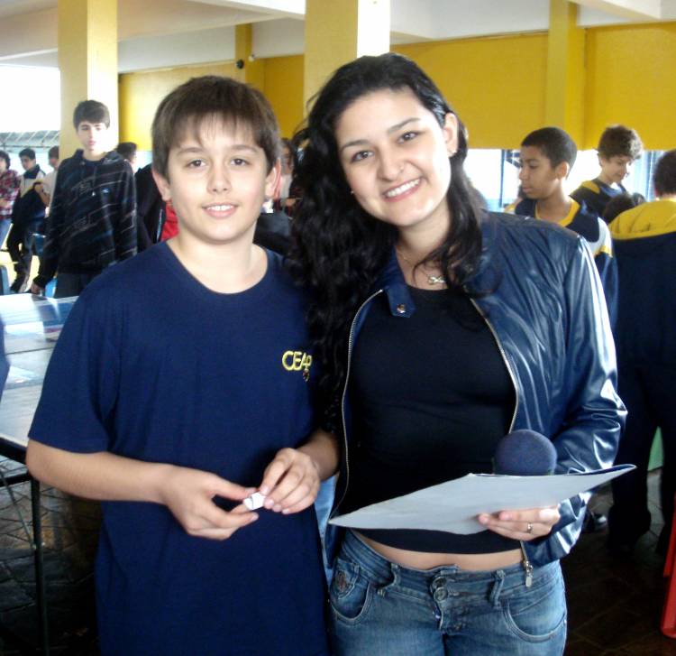 Além de todo o bate-papo, os alunos ainda responderam às perguntas da competição entre escolas, disputando os pontos! Foram seis perguntas, sorteadas e respondidas ao vivo, contando também com a ajuda dos ouvintes, que interagiram pelo telefone, celular e MSN. Ambos os alunos tiveram uma boa pontuação no quiz, somando muitos pontos para suas escolas.
