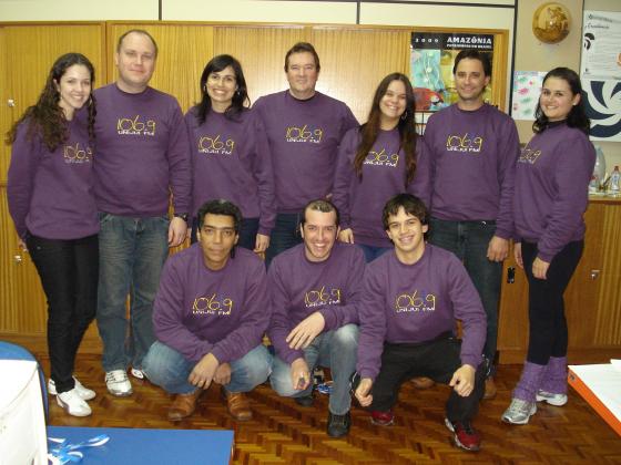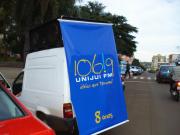 A UNIJUÍ FM começou as comemorações de seus 8 anos parando o trânsito no centro da cidade, nesta segunda-feira! A equipe da 106.9 foi para o cruzamento das ruas Benjamin Constant e do Comércio e distribuiu adesivos para os motoristas dos carros que passaram pelo trecho.