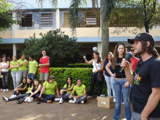 A Escola 25 de Julho teve um recreio diferente na tarde da última terça-feira, dia 13. A UNIJUÍFM, em colaboração com o III Seminário Municipal de Trânsito de Ijuí, esteve presente na escola com o programa Hora do Recreio. Além de música e das brincadeiras, rolou um bate-papo super bacana com o pessoal da ONG Vida Urgente.