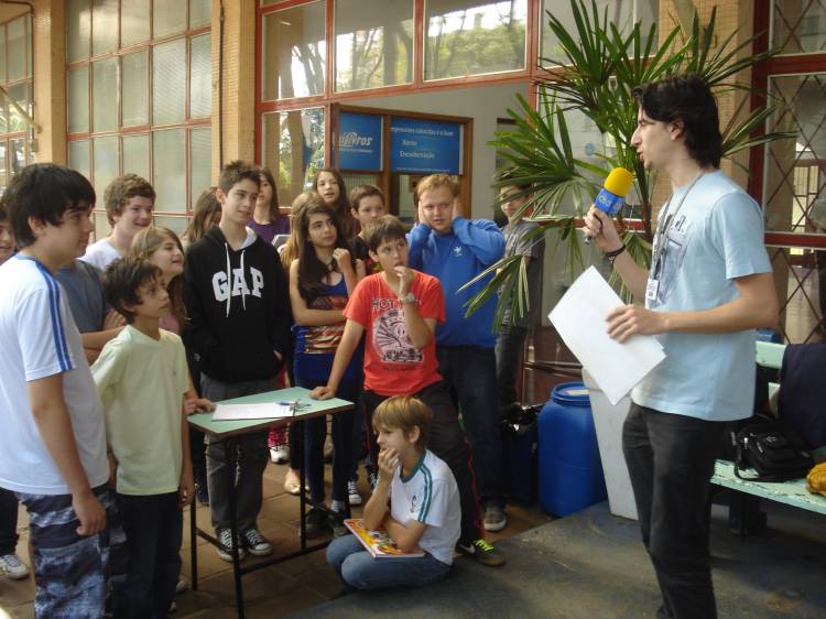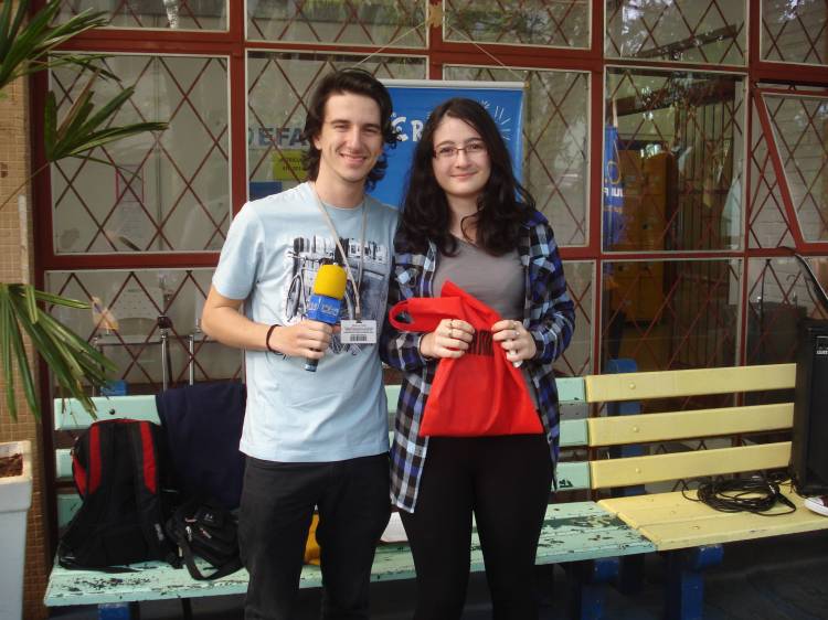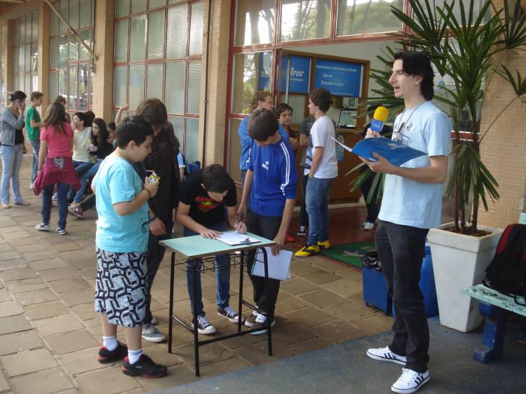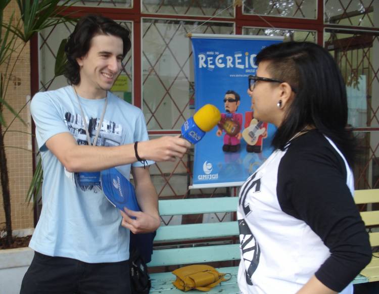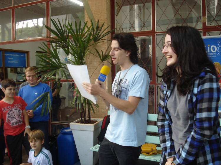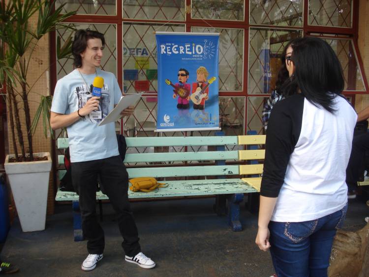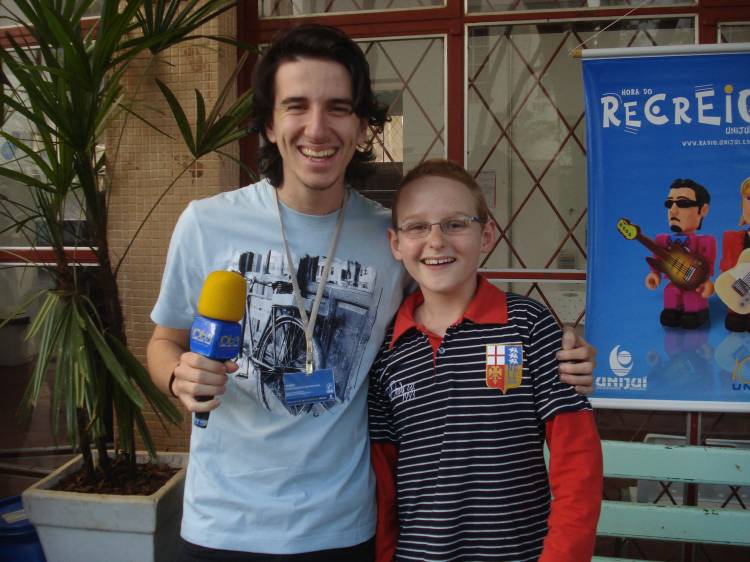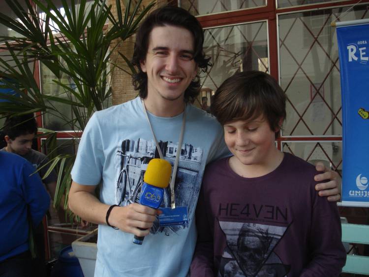 O Hora do Recreio dessa semana foi com os alunos do Centro de Educação Básica Francisco de Assis, a EFA. Na manhã de quarta-feira, 30, a equipe da 106.9 esteve na Escola para participar do recreio com os alunos. Foi um momento de interação com a galera, onde os alunos responderam às perguntas, posaram para fotos e ainda fizeram o pedido musical para rodar na programação da Unijuí FM. À tarde foi à vez dos alunos se dirigirem ao estúdio da 106.9 para participar da competição. A EFA contou com dois representantes do 2º ano do Ensino Médio, a Luisa e o Jordano, para responder ao “quiz”. Além das perguntas, os estudantes ainda bateram um papo com a equipe da Unijuí FM sobre suas expectativas para o futuro. Na próxima semana o Hora do Recreio conta com a participação do Colégio Militar Tiradentes. O programa vai ao ar toda quarta-feira, a partir das 16h30. Fique ligado no 2º semestre do Hora do Recreio! Sexta-feira, 01/11/13 Confira as fotos da galera da EFA.
