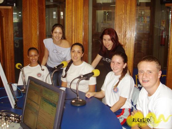 E depois de uma manhã divertida e cheia de brincadeiras, a tarde foi de visita aos estúdios da UNIJUÍ FM. Os alunos Quêmile Martins, Eloane Pereira, Bibiana de Quadros e Eduardo Hermann estiveram no estúdio da rádio e, acompanhados do Soldado Rodrigues, puderam contar um pouco mais do dia-a-dia na escola e das atividades que serão desenvolvidas ao longo do ano.