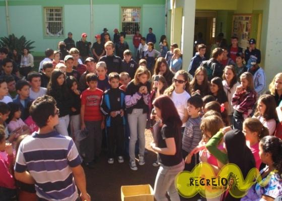 Meia hora de recreio, músicas, brincadeiras e sorteios de brindes marcaram a realização de mais um programa Hora do Recreio, desta vez no IMEAB, fazendo parte da programação do aniversário da escola, comemorado durante toda esta semana. Hora do Recreio aconteceu na manhã desta quarta-feira, dia 06, na escola, e teve continuidade à tarde, com a presença de alunos nos estúdios da UNIJUÍ FM para o programa ao vivo.