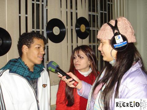 Já no início do programa, a equipe entrevistou o Herson, do 3˚ ano, que falou sobre o projeto de criar uma rádio na escola, com a ajuda do Grêmio Estudantil. Douglas, que é vice-presidente do grêmio da escola, falou também sobre a rádio, e ainda contou sobre os torneios e a gincana que estão promovendo.