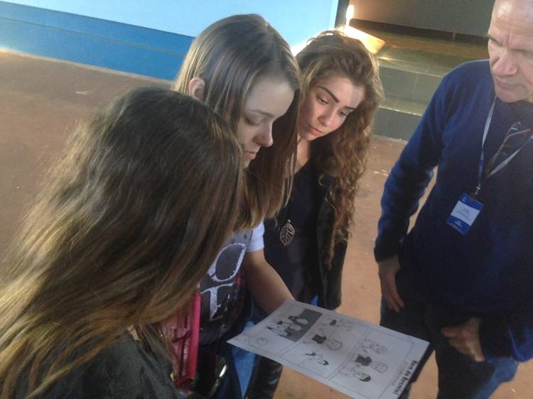 A novidade deste ano envolve criatividade e História em Quadrinhos. Toda semana, a UNIJUÍ FM leva uma página de HQ, feita pelas mãos do artista Guilherme Barrozo, para que a escola escreva a história através dos diálogos dos personagens. Ontem, a estreia do Hora do Recreio aconteceu no Colégio Comendador Soares de Barros, em Ajuricaba e o tema da História em Quadrinhos foi trabalho em grupo.