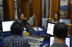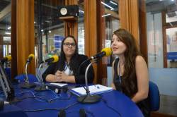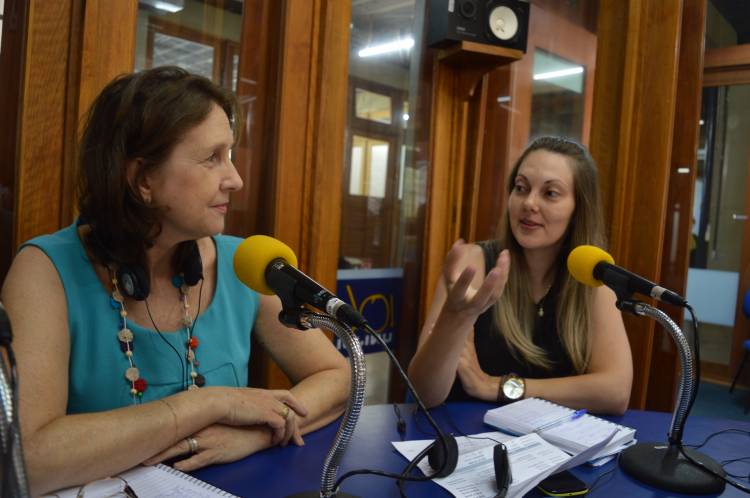 ![]() Carine Da Pieve e Valéria Foletto, bolsista do projeto Gestão Social e Cidadania, discutiram a mulher no rádio, debate de quinta-feira |