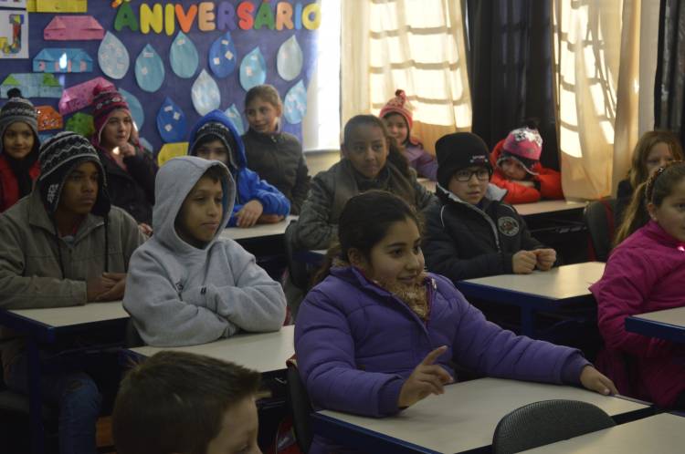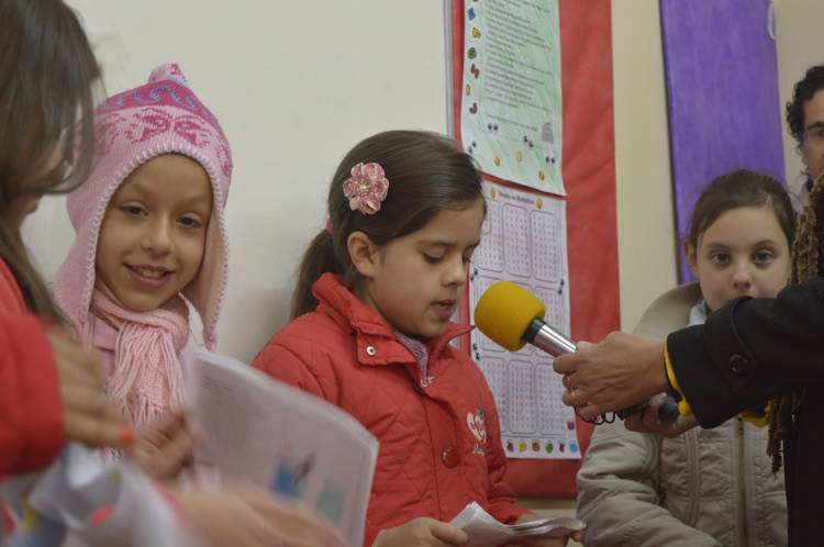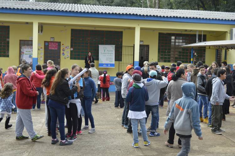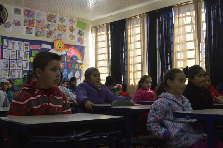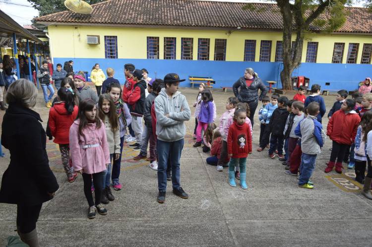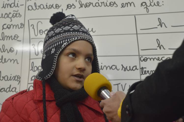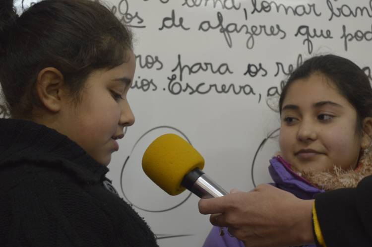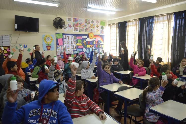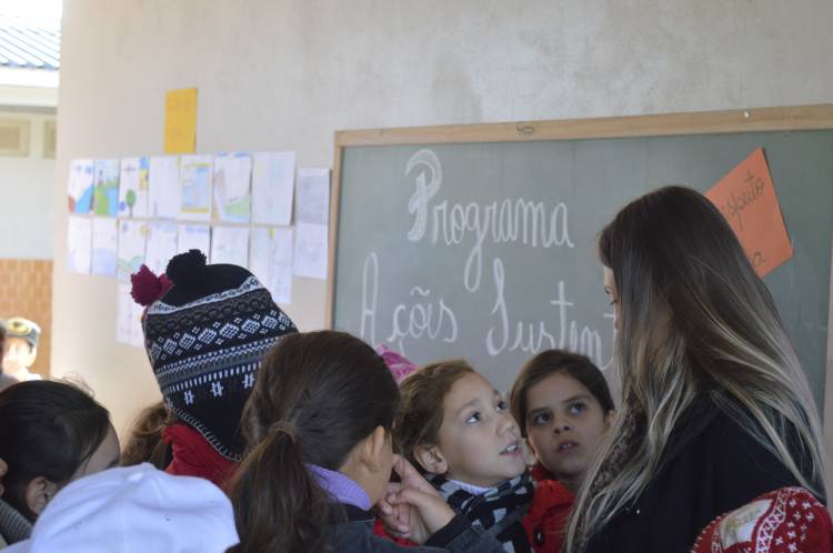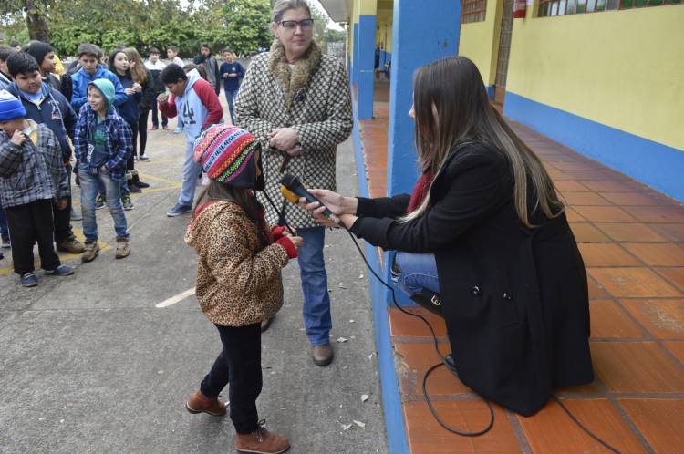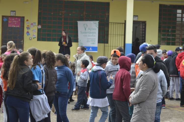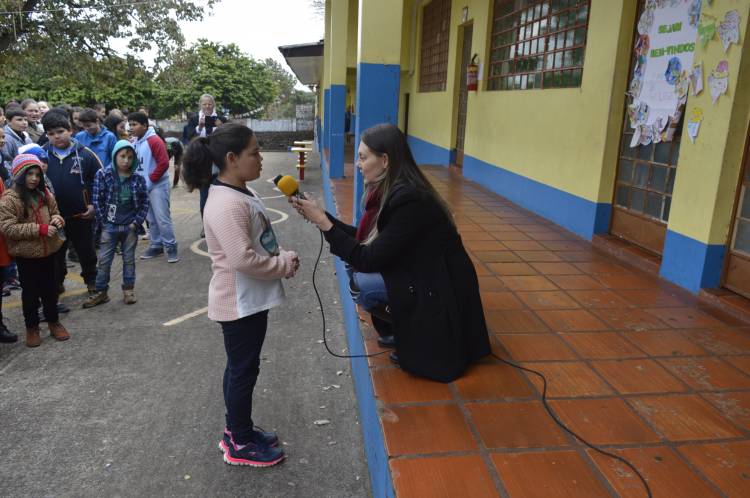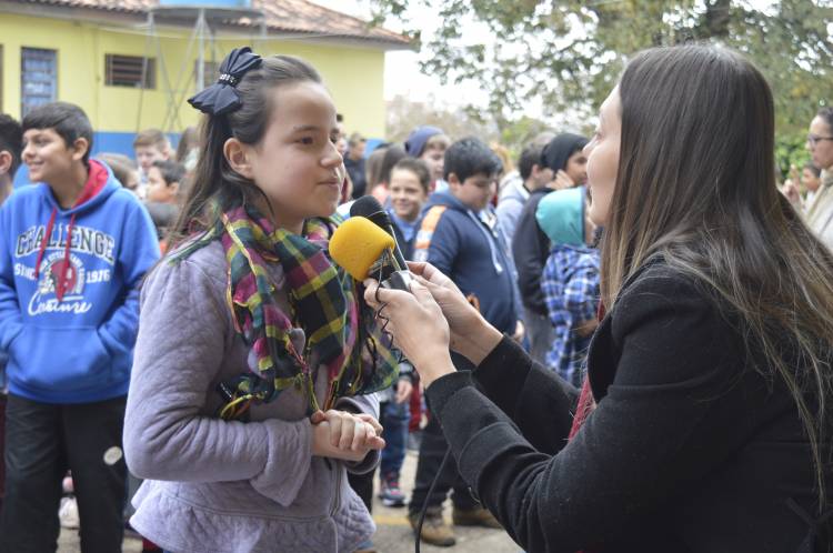 Na Escola São Geraldo, 220 alunos do 1º ao 7º foram reunidos no pátio, local onde ocorreu a dinâmica: falas no microfone, lembranças do conteúdo veiculado no rádio e dicas para a preservação do meio ambiente.
