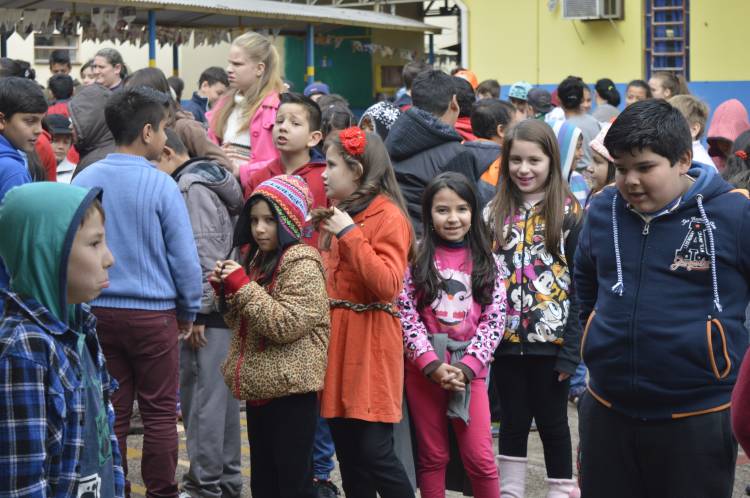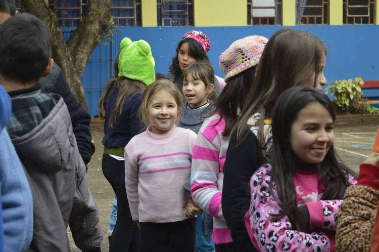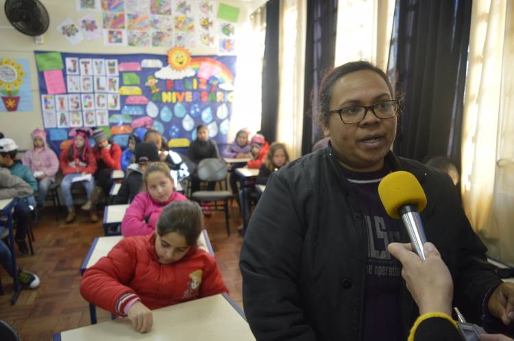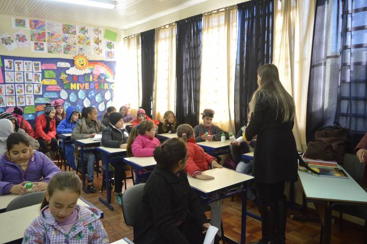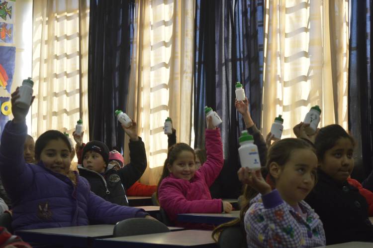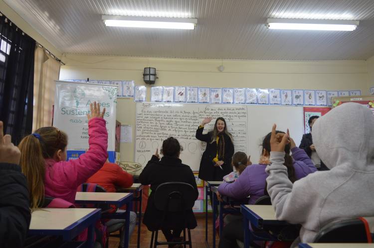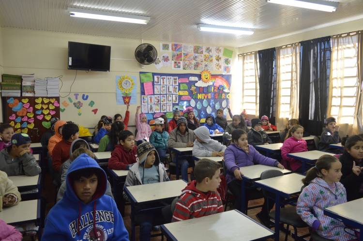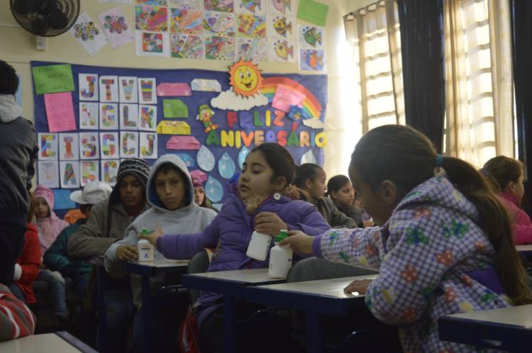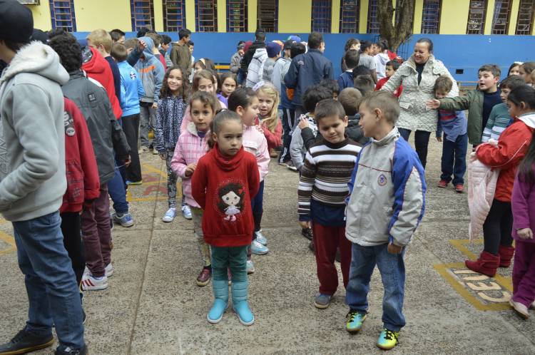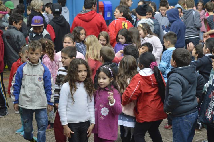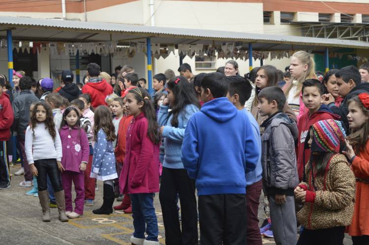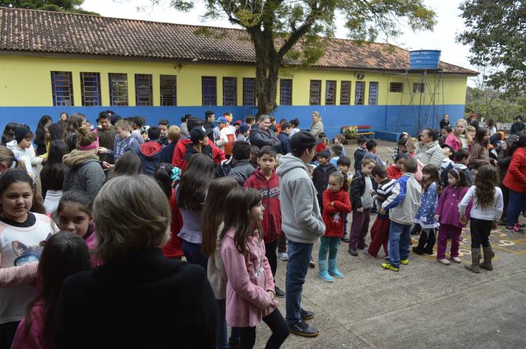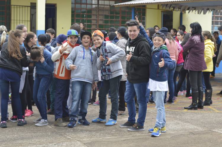 Na Escola São Geraldo, 220 alunos do 1º ao 7º foram reunidos no pátio, local onde ocorreu a dinâmica: falas no microfone, lembranças do conteúdo veiculado no rádio e dicas para a preservação do meio ambiente.