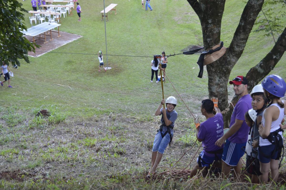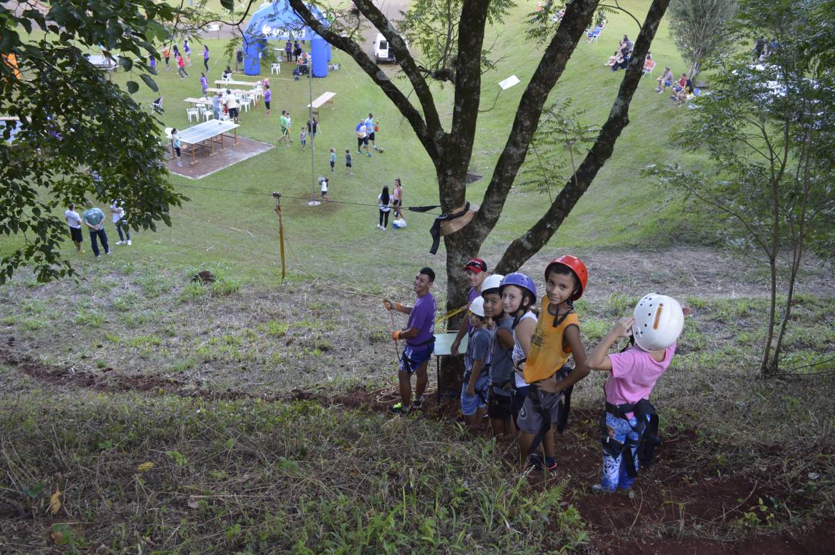 PRÁTICAS DE AVENTURA: Tirolesa (para crianças); Rapel (para crianças); Esporte de Orientação; Slackline.