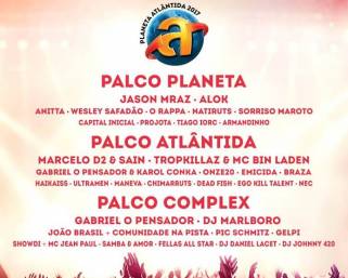 Entre alguns destaques estão o cantor e compositor Jason Mraz em mais uma passagem pelo Brasil, o DJ Alok e as bandas O Rappa, Natiruts, BRAZA, Ego Kill Talent e Dead Fish. Também se apresentarão: Gabriel O Pensador, Karol Conka, Marcelo D2, Anitta, Wesley Safadão, Sorriso Maroto e muitos outros. Veja a lista completa na imagem acima.