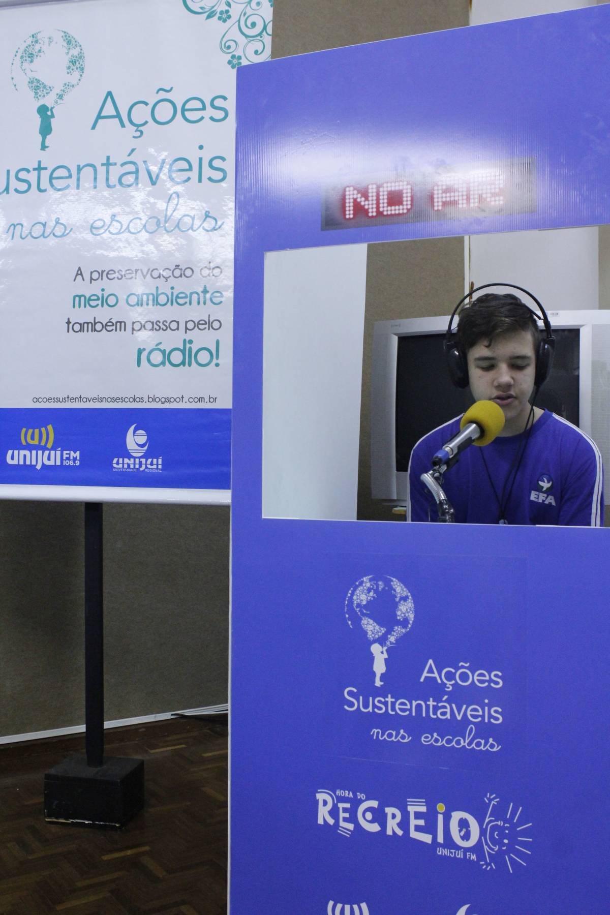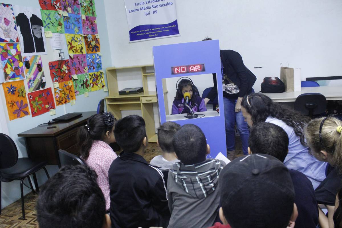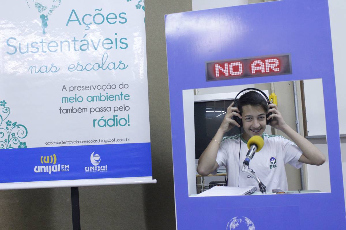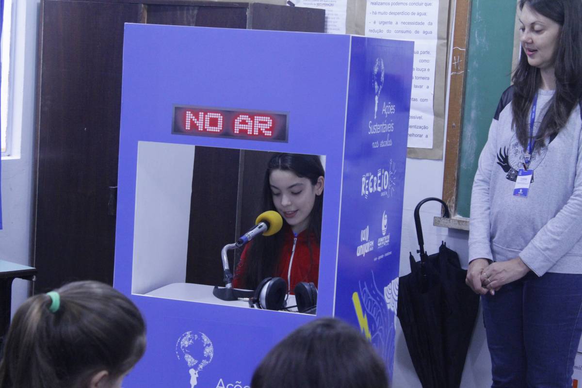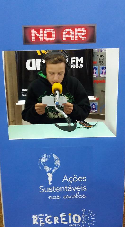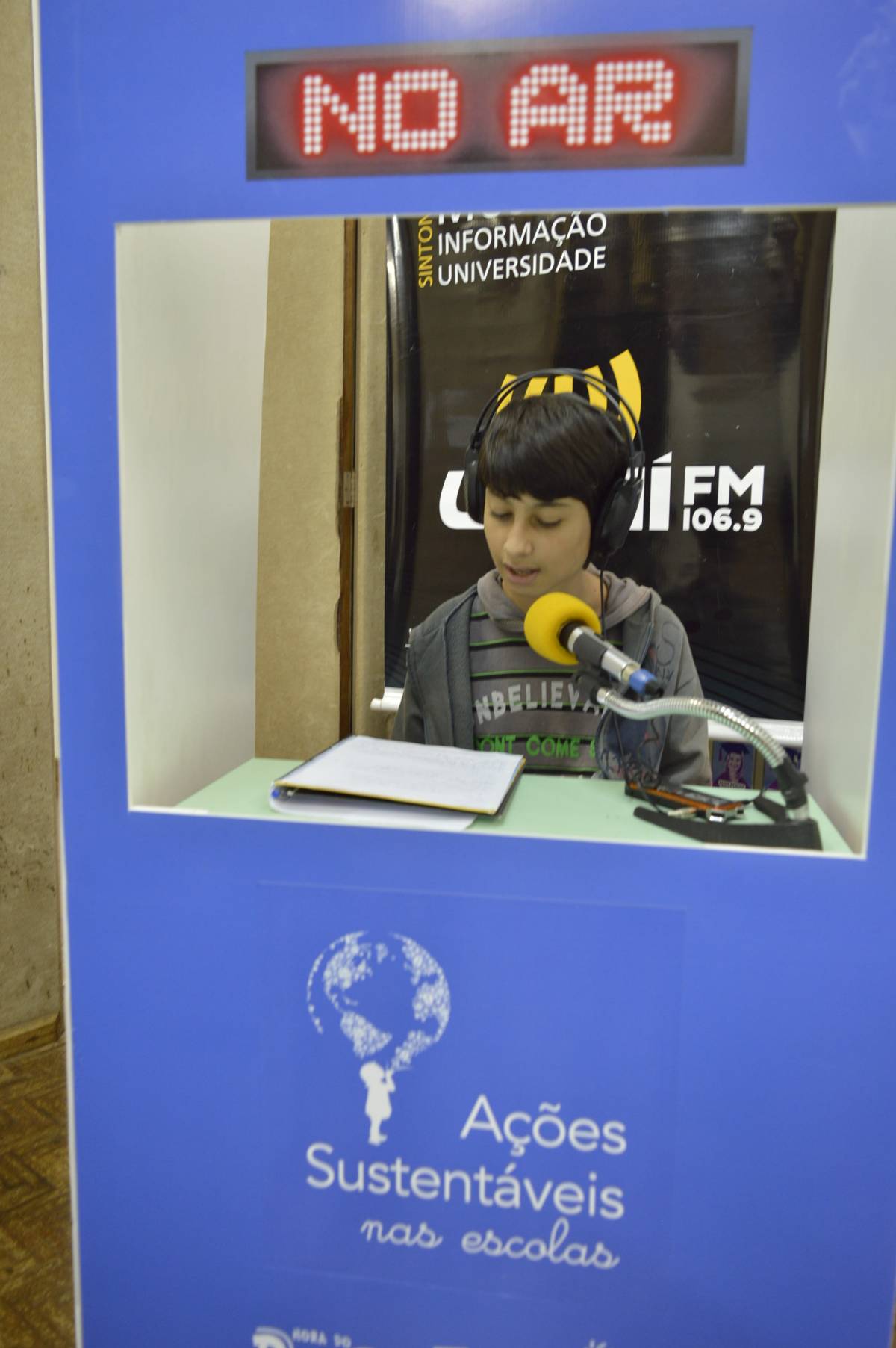 Nesse sentido, turmas do 1º ao 5º anos realizaram atividades práticas, de pesquisa e reflexão e elaboraram dicas de cuidados com o meio ambiente. A UNIJUÍ FM visitou as escolas com uma cabine de rádio e simulou a participação dos alunos como locutores, estimulando a comunicação e a expressão oral. Os Anos Finais também participaram da fase de audições dos conteúdos ambientais no rádio e visitaram os estúdios da Rádio no Campus Ijuí, onde puderam saber mais sobre o funcionamento da emissora, sobre o rádio como veículo de informação e comunicação e também puderam ser locutores por um dia.
