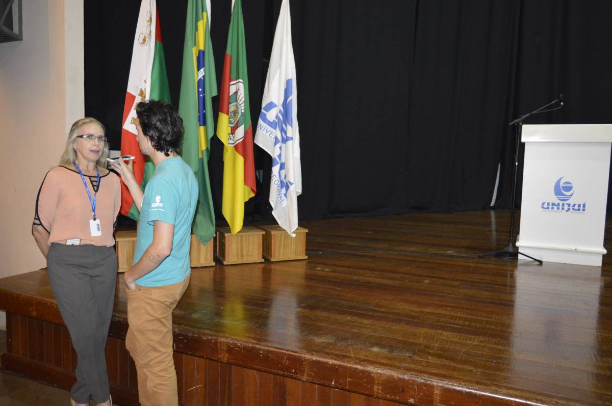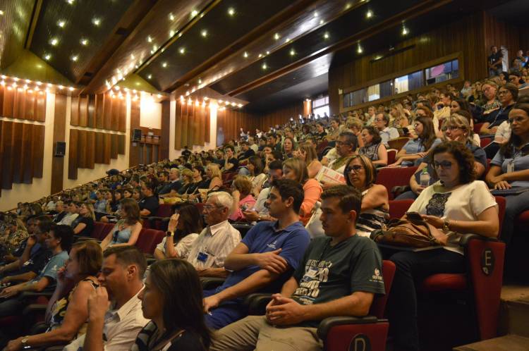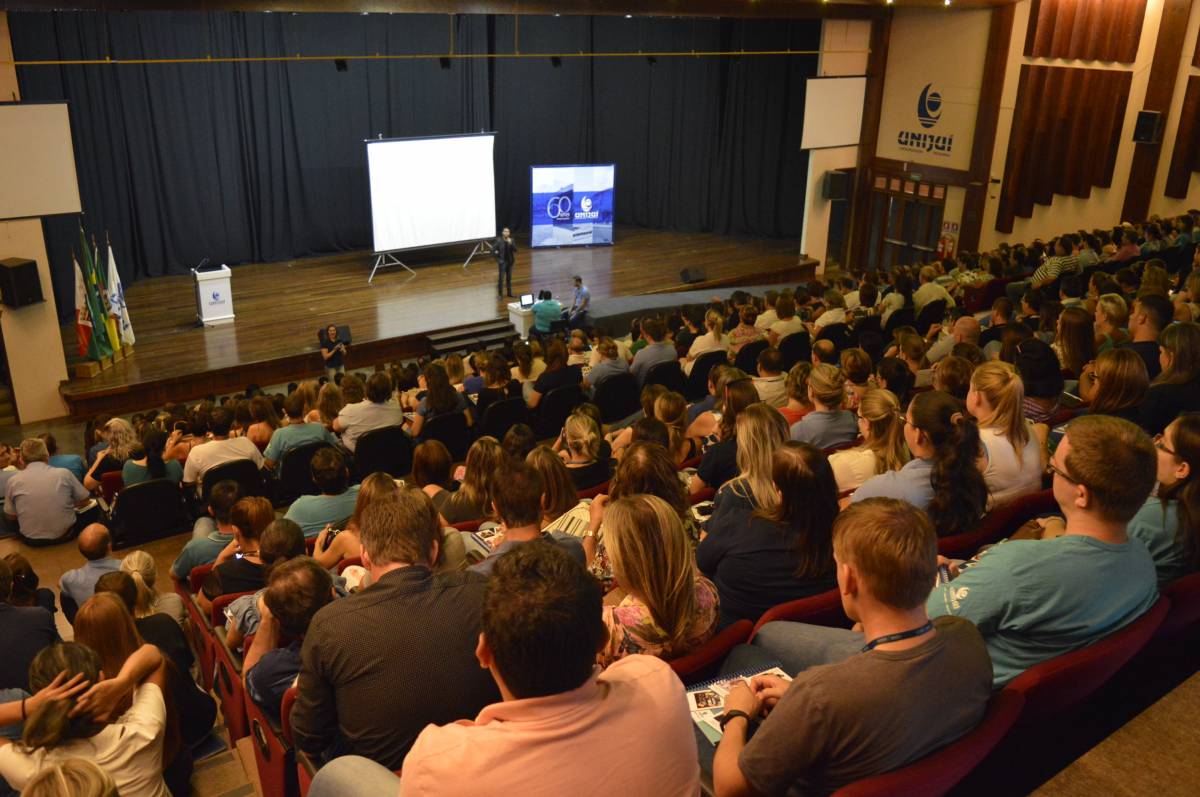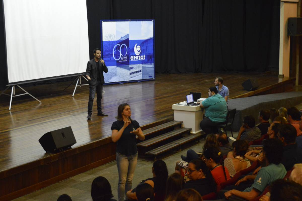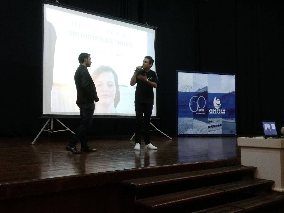O Salão de Atos Argemiro Jacob Brumm lotou de técnicos-administrativos, de apoio e professores dos quatro campis da Unijuí para o evento de integração de Volta às Aulas 2018. Além das boas-vindas, a programação apresentou a definição dos principais projetos institucionais da FIDENE/UNIJUÍ e foi marcada por um momento cultural, a partir da exibição do filme Cromossomo 21. Também aconteceu um bate-papo com os egressos Alex Duarte (Comunicação Social – Publicidade e Propaganda), que assina o roteiro e a direção do filme e de Luís Fernando Irgang (Administração), protagonista ao lado de Adriele Pelentir, uma jovem com Síndrome de Down.