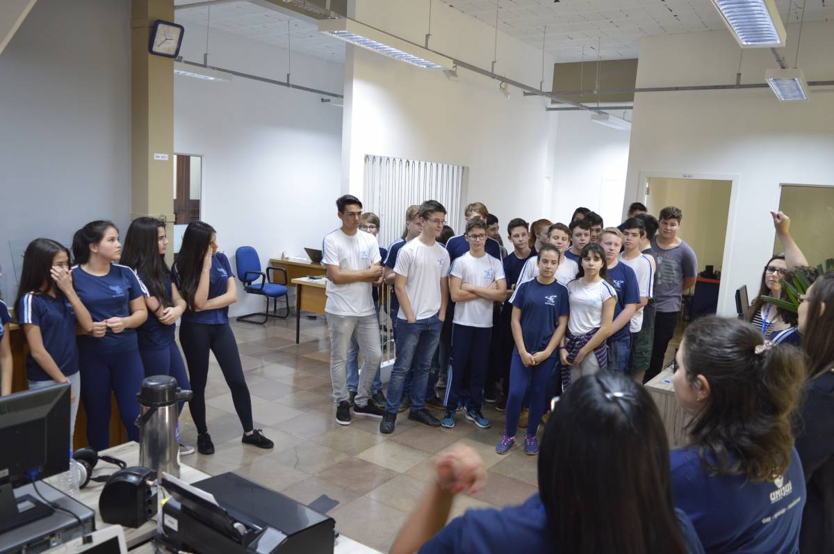 A Unijuí FM recebeu a visita de duas escolas na tarde desta quarta-Feira. A Escola Estadual de Ensino Fundamental Rui Barbosa, o Ruizinho, visitou os espaços da Universidade com uma turma do 9º ano e aproveitou para conhecer as novas instalações da Rádio, num bate-papo que rolou sobre comunicação, programação e rotinas do jornalismo.