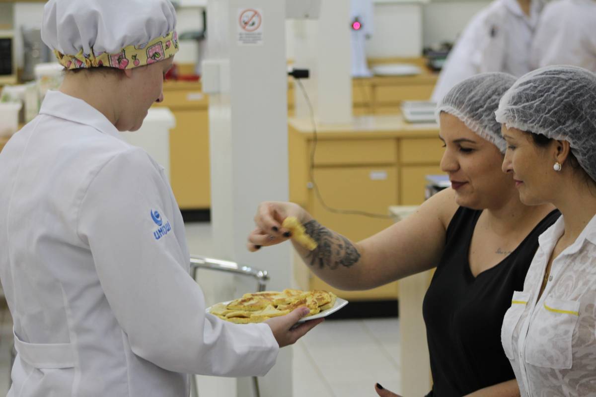 Além de informações sobre o Guia Alimentar para a População Brasileira, que enfatiza sobre a importância de dar preferência aos alimentos in natura ou minimamente processados, os pais da turma puderam acompanhar de perto a escolha, produção e degustação de lanches mais saudáveis para pré-escolares e escolares. A professora que coordenou a atividade, junto aos acadêmicos de Nutrição do 5º semestre, Mariana Novack, afirmou que a proposta da turma foi substituir alimentos ultra processados, que muitas vezes são mandados para a escola como lanche, por preparações mais saudáveis. “Devemos ter muito cuidado com relação ao tipo de lanches ofertados para essas crianças pois é na infância que os hábitos alimentares são desenvolvidos, então, procurar enviar para a escola alimentos mais saudáveis, nutritivos e evitar os alimentos ultra processados”, reforça. Entre as receitas elaboradas como sugestão, estão: bolo de couve, pão de queijo de beterraba, pães nutritivos kids, panqueca de banana, mini pizza e sanduíche integrais, cooks ricos em fibras e bolo salgado de legumes.