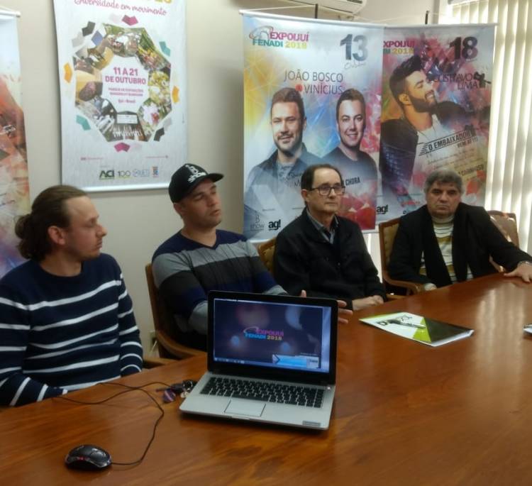 Na manhã desta segunda-feira, 6, no auditório da Associação Comercial e Industrial (ACI) de Ijuí, foram divulgados os shows nacionais que integrarão a programação da Expo-Ijuí/Fenadi 2018. O tradicional evento que, este ano, acontece de 11 a 22 de outubro, contará com uma série de atrações artísticas e culturais, além de melhorias na infraestrutura e novas bilheterias.