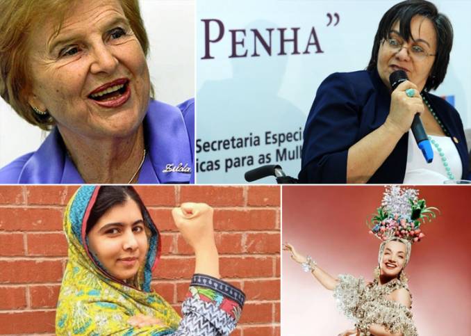 Zilda Arns Neumann e Maria da Penha (acima), Malala Yousafzai e Carmem Miranda (abaixo)